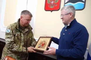 Губернатор Камчатки встретился с морпехами в Москве и передал икону