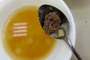 Суп был подан горячим, однако мясные шарики явно не дошли до нужной температуры.
