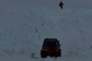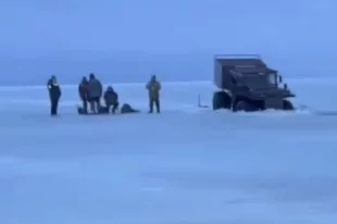 Снегоболотоход с рыбаками на борту провалился под лед в 10 км от берега.
