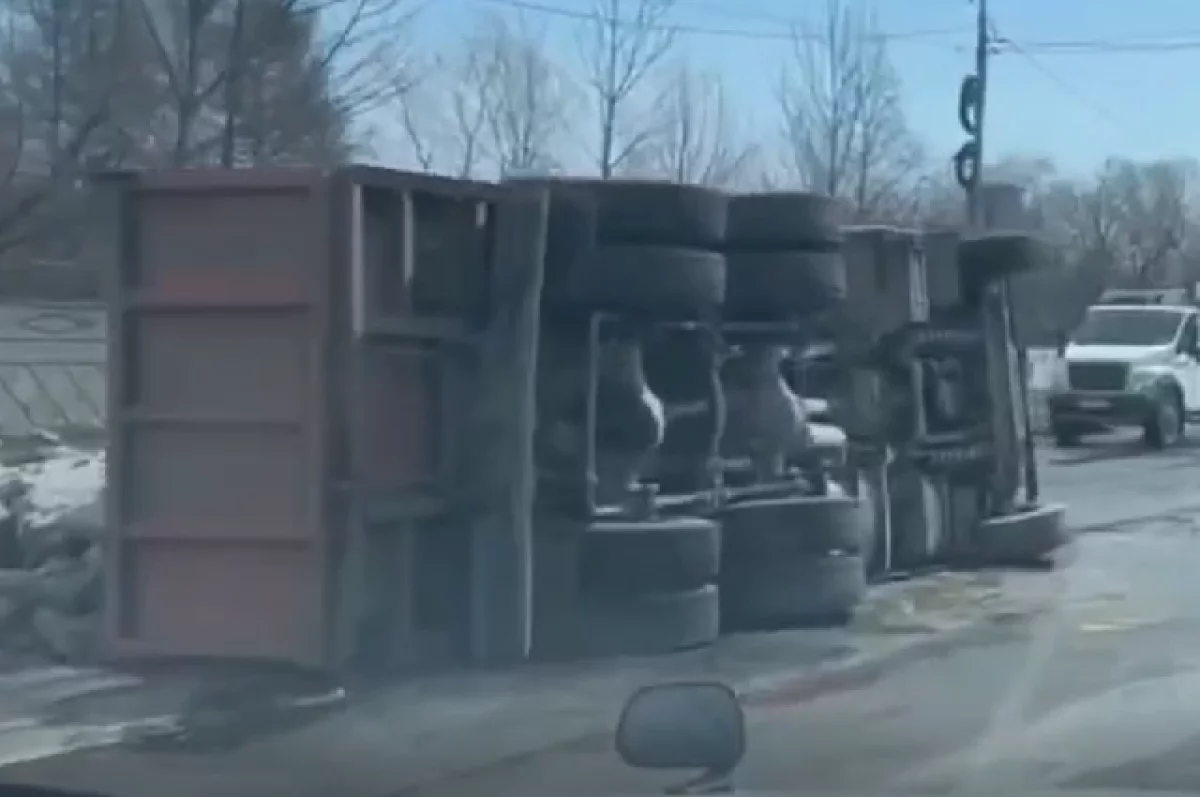 Сегодня днем, 18 апреля, на улице Пограничной в Петропавловске-Камчатском перевернулся «КамАЗ».
