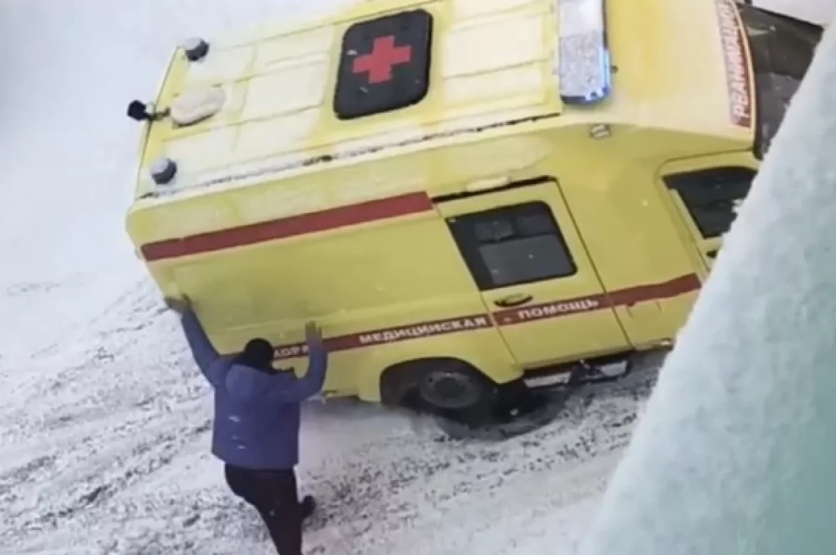 По словам жителей, реанимобиль с пациентом заехал колесом в яму, образовавшуюся после откопки люка от снега.