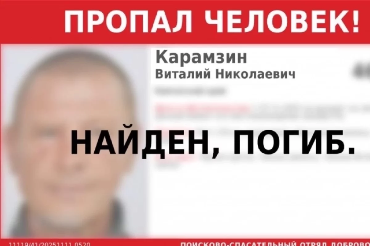 46-летний Виталий Карамзин, которого искали с 7 ноября, погиб. Об этом сообщили в ПСО «Доброволец».