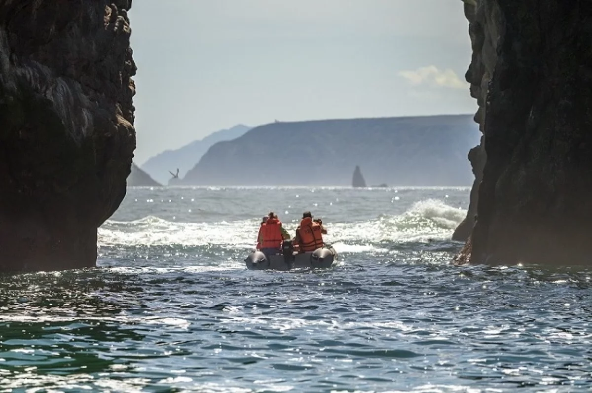 Туристическая группа отправилась на обычную морскую прогулку. Перед выходом организаторы провели и даже сняли на камеру инструктаж по технике безопасности. В кадр попали молодые парень и девушка – брат и сестра, прилетевшие из Москвы посмотреть на камчатские красоты.