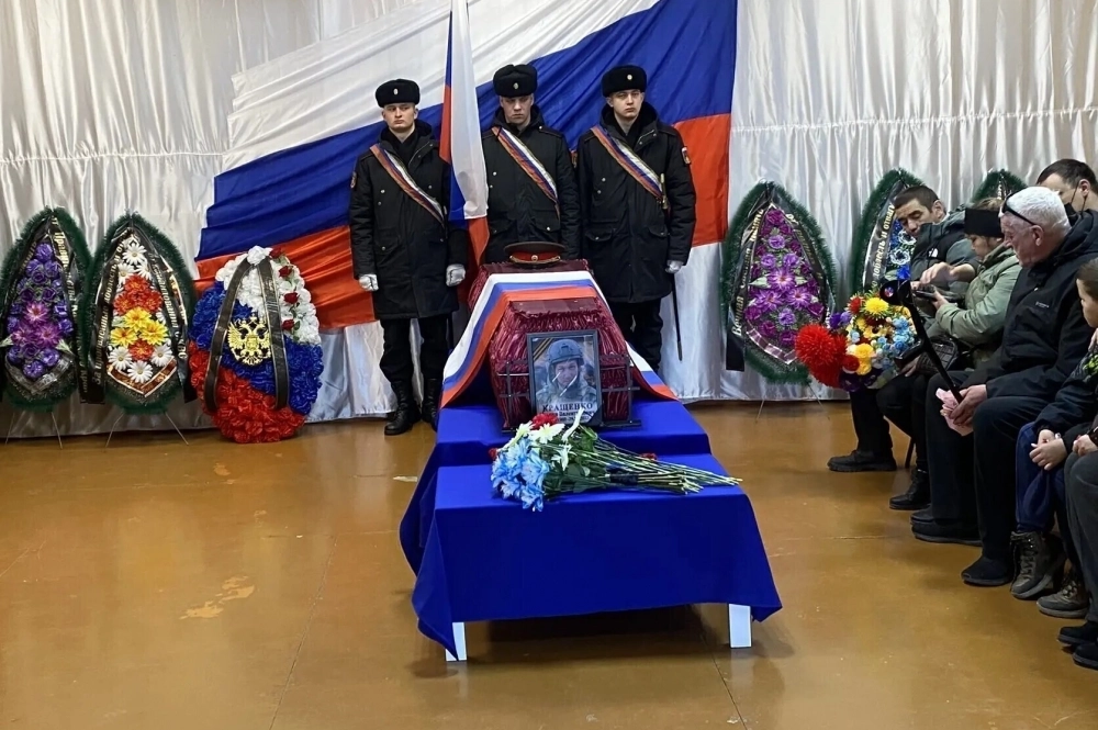 Траурная церемония прошла в помещении культурно-досугового центра «Родник». Возле гроба с телом павшего бойца замер почётный караул из военнослужащих, а при входе и у государственных флагов несли вахту юнармейцы.