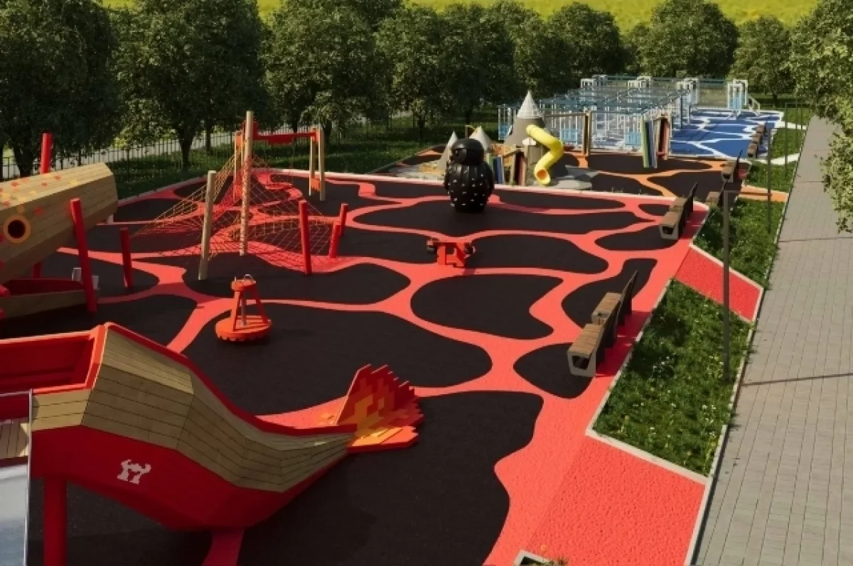 В парке «Электрон в Петропавловск-Камчатском для малышей (3–7 лет) планируют построить игровую площадку «Вулкан», а для ребят постарше – «Дракон» с горками, каруселями и даже небольшими скалодромами.