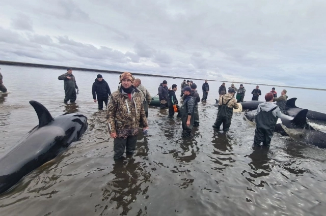 «У нас же приливы, отливы. И вот в тот день мужчина спешил на лодке в море и скинул в мессенджере сообщение, что на берег выкинуло косаток. Я, мой знакомый и жена сразу же поехали на место. Взяли ведра, предполагали, что придется поливать животных. Нашли косаток, стали поливать. Потом писали в группы, звонили главе администрации, в МЧС. Людей на берегу собралось много, но реальную помощь оказывали человек 20», — говорит Алексей.