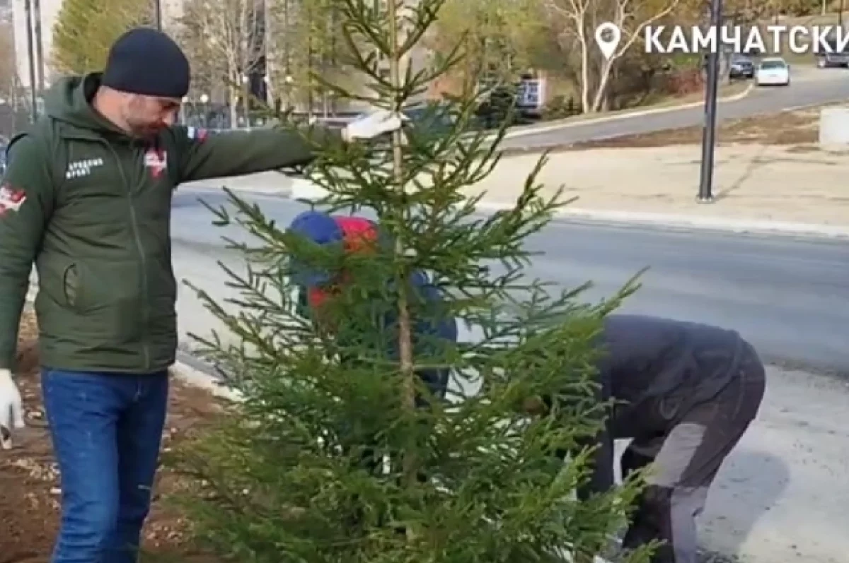 Они высадили семь аянских елей вдоль улицы Ленинской сразу за драмтеатром. Саженцы привезли из питомника Елизовского округа.