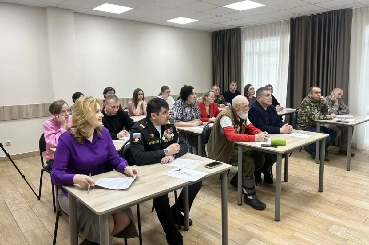 Секретарь камчатского отделения «Единой России» Виктория Сивак писала диктант вместе с членами семей участников СВО в отделении Фонда защитников Отечества.
