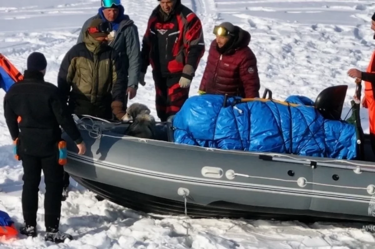 На помощь им отправились 5 спасателе на вездеходе «Алеут». С собой сотрудники МЧС везли надувную лодку, беспилотник, гидрокостюмы и другое оборудование для оказания помощи.