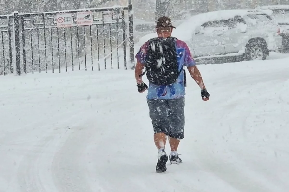 «Кто тут ноет - холодно, ой снег, ветер. Выходил из поликлиники и нашел самого здорового человека на Камчатке. Завидую белой завистью, но хочу предупредить, что не надо в пургу так рисковать даже если обладаете богатырским здоровьем. Мало ли, можно поскользнуться, ногу подвернуть и в шортах и футболке точно замерзнуть. Молодец, конечно, парень.... но очень рисковый», - прокомментировал министр.