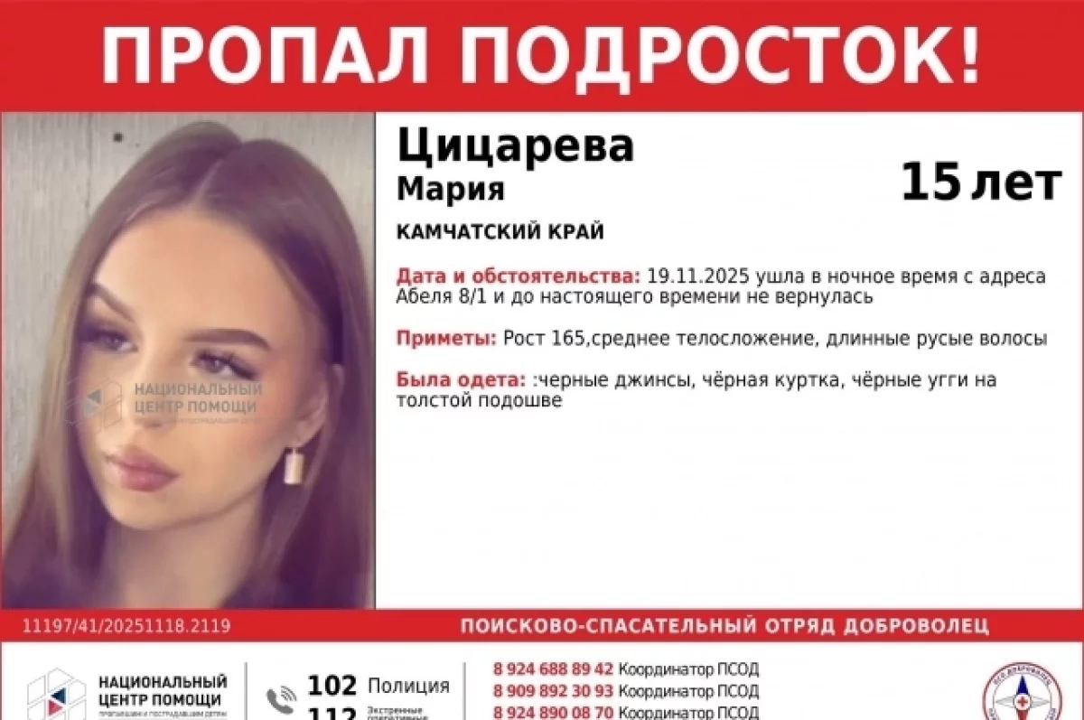 На Камчатке пропала 15-летняя школьница Мария Цицарева.