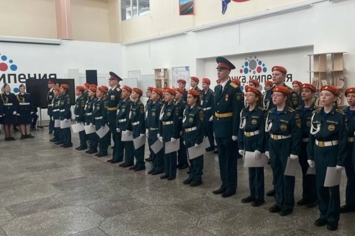 Кадеты под командованием офицеров спасцентра МЧС приняли присягу
