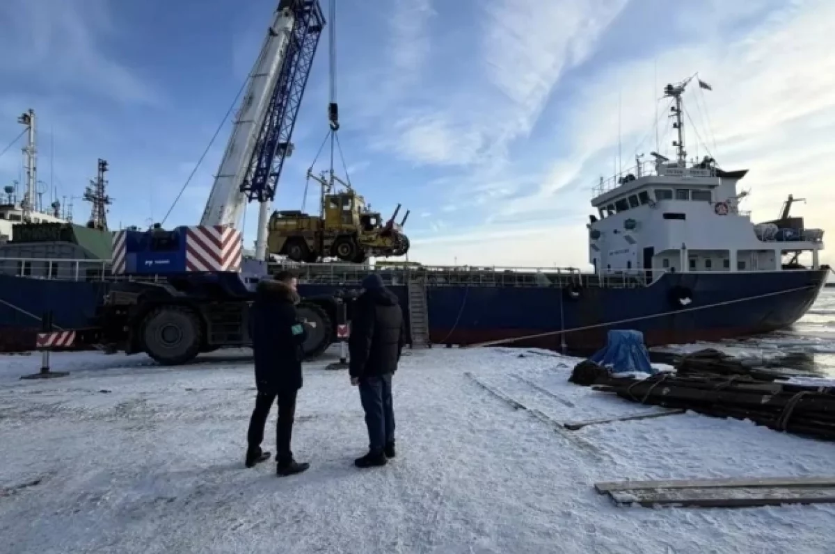 Судно, на борту которого несколько грейдеров, шнекоротеров и фронтальных погрузчиков отправилось из порта Корсаков.