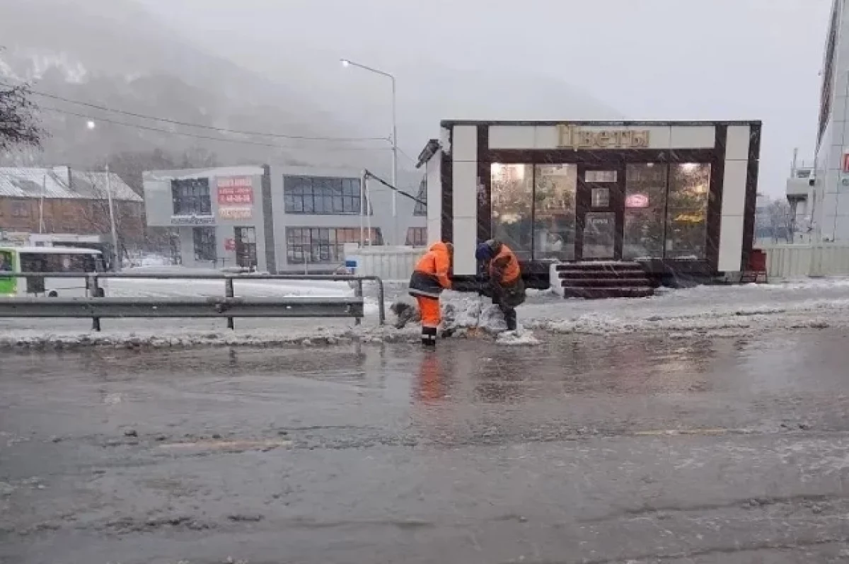 Сначала техника обрабатывала дороги противогололедными материалами, а с усилением циклона началась расчистка образовавшейся шуги. Одновременно бригады рабочих вручную прочищают ливневые стоки для обеспечения нормального водоотвода. Отмечается, что из-за перепада температур снег перешел в дождь, что усложнило ситуацию на дорогах.