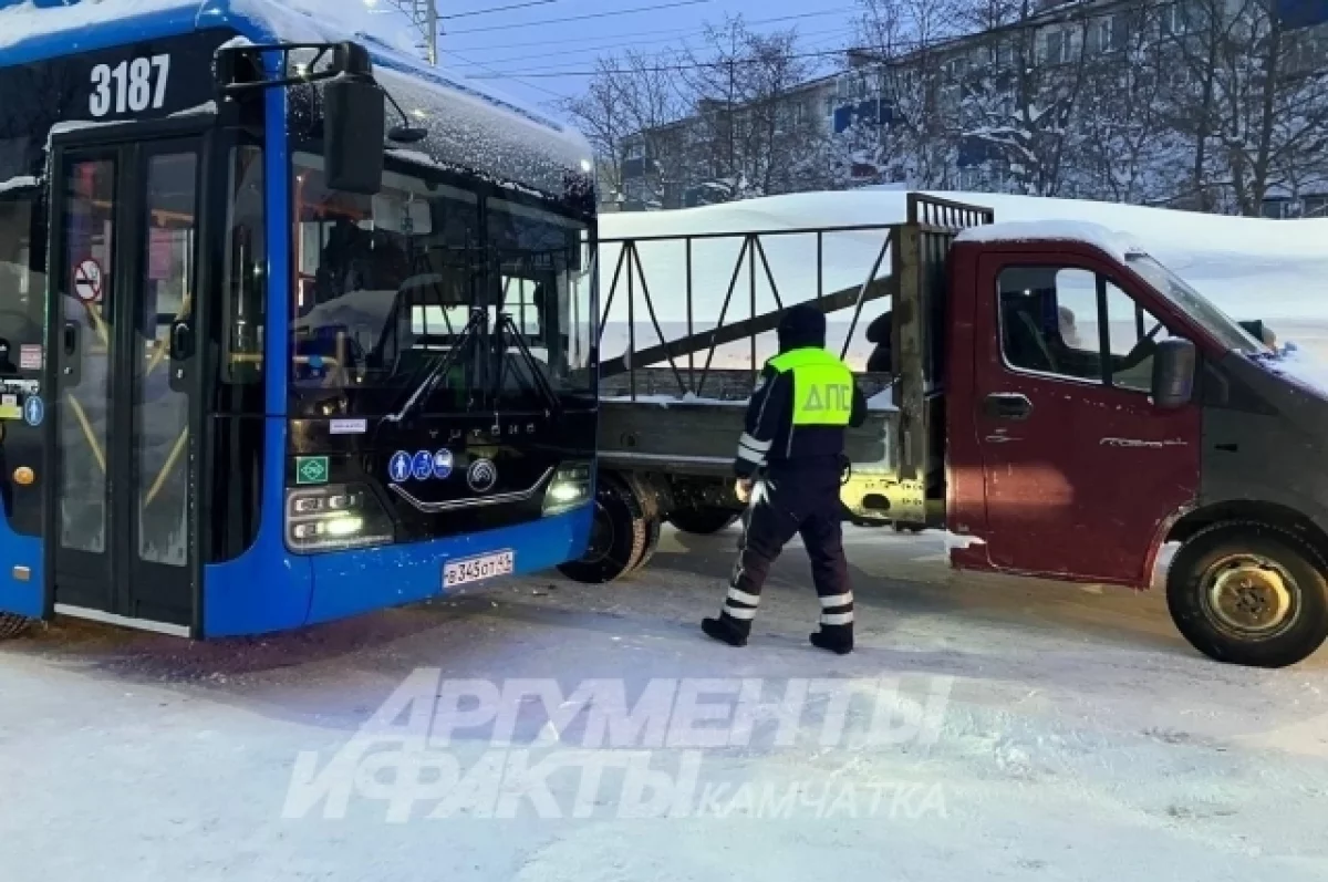 Сегодня утром, 20 января, на остановке АЗС не смогли разъехаться автобус № 22 и грузовичок «Соболь».