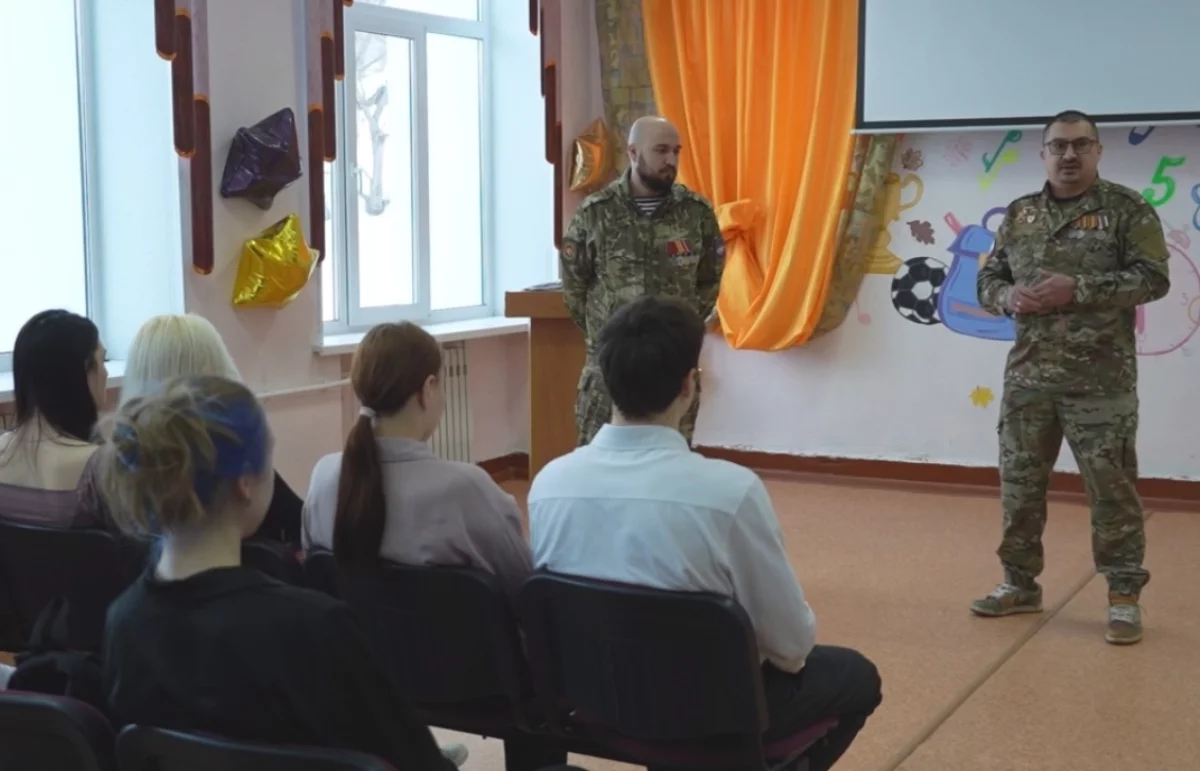 В Петропавловске-Камчатском в преддверии Дня защитника Отечества ветераны специальной военной операции провели уроки мужества в десяти школах города. Одно из заключительных занятий прошло в школе № 35 — c ребятами старших классов общались ветеран СВО Александр Богданов и социальный координатор Фонда «Защитники Отечества» Евгений Брейкин.