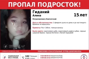 На Камчатке пропала 15-летняя девочка в черной куртке