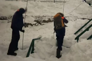 Спасатели обследовали снежную массу с помощью противолавинных щупов